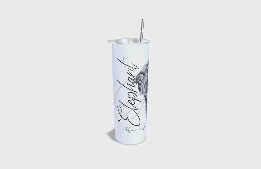 Die 20oz Elephant Skinny Tumbler is 'n dubbelwandige, vlekvrye staal beker met 'n kapasiteit van 550 ml. Ontwerp vir diegene met 'n groot dors, hierdie beker hou nie net drankies kouer vir langer nie, maar kom ook met 'n BPA-vrye deksel en plastiekstrooi. Dit is ook skottelgoedwasser veilig vir maklike skoonmaak.